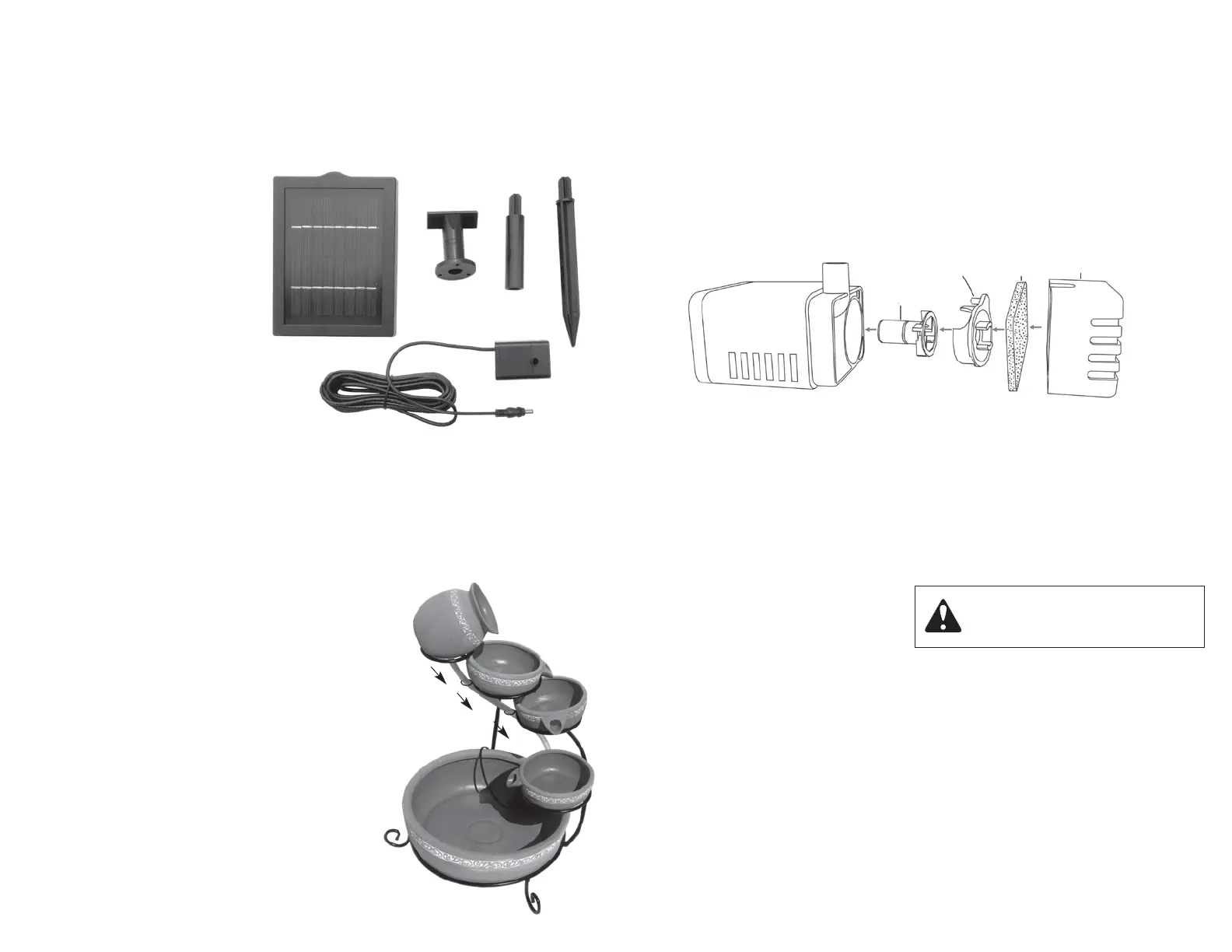 • The solar pump is designed for outdoor fountain use, and is powered by a solar panel.