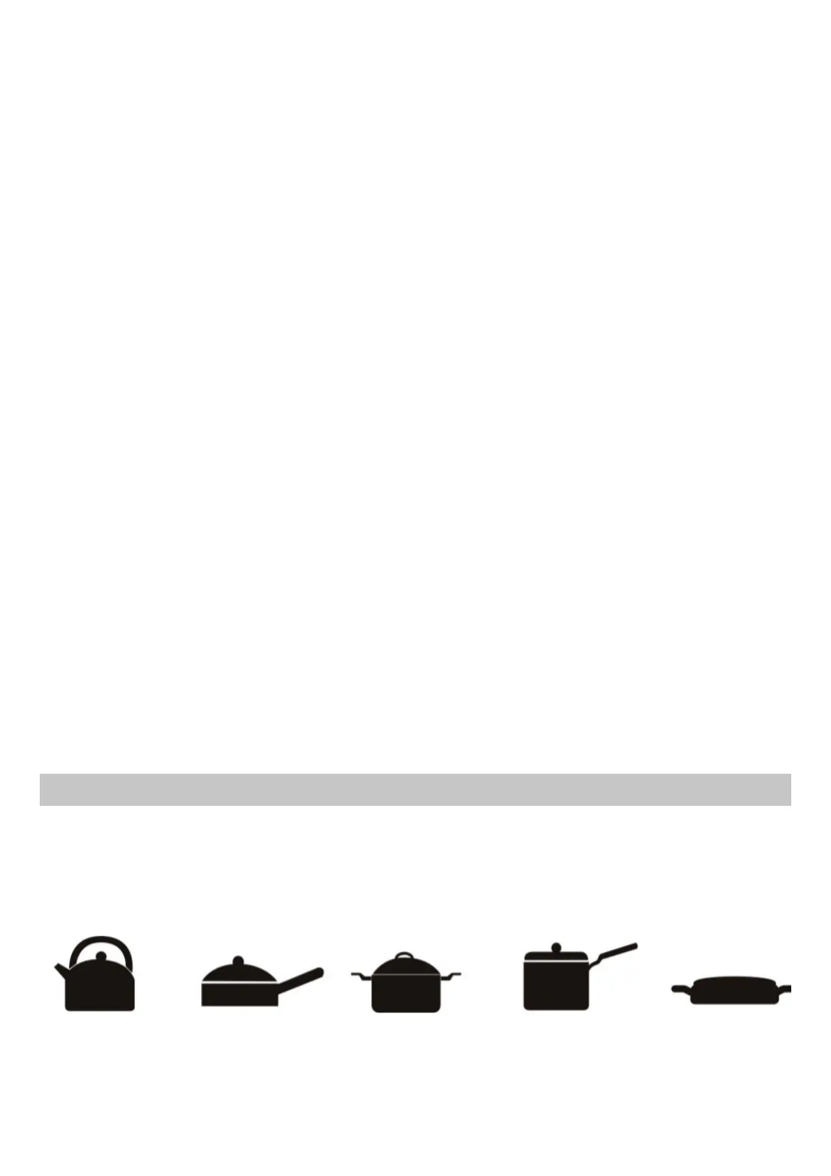• Steel, cast iron, enameled iron, stainless steel, flat-bottom pans/pots