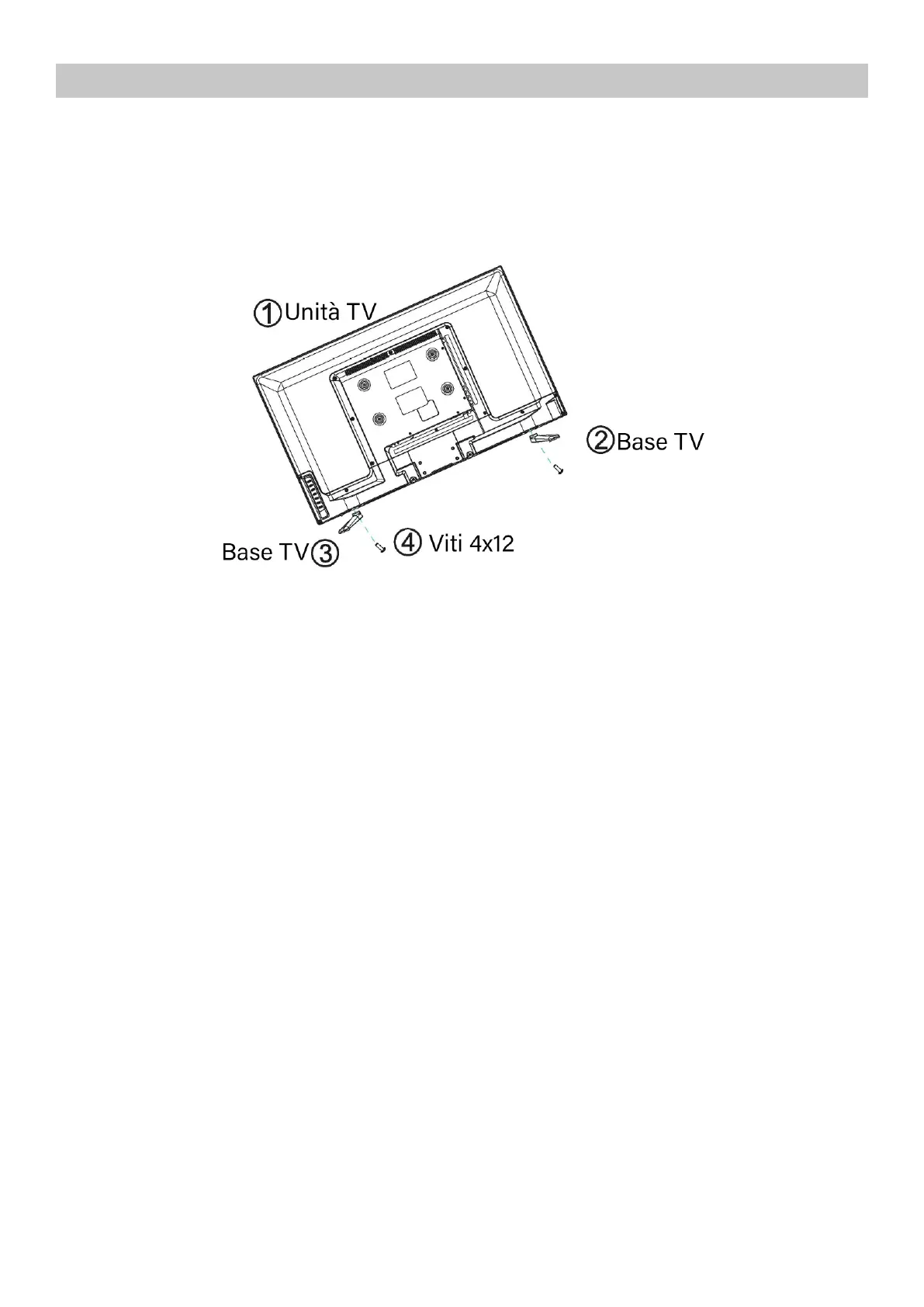 Posizionare le due basi TV nella posizione descritta in figura, inserire le viti e serrarle fino in fondo.