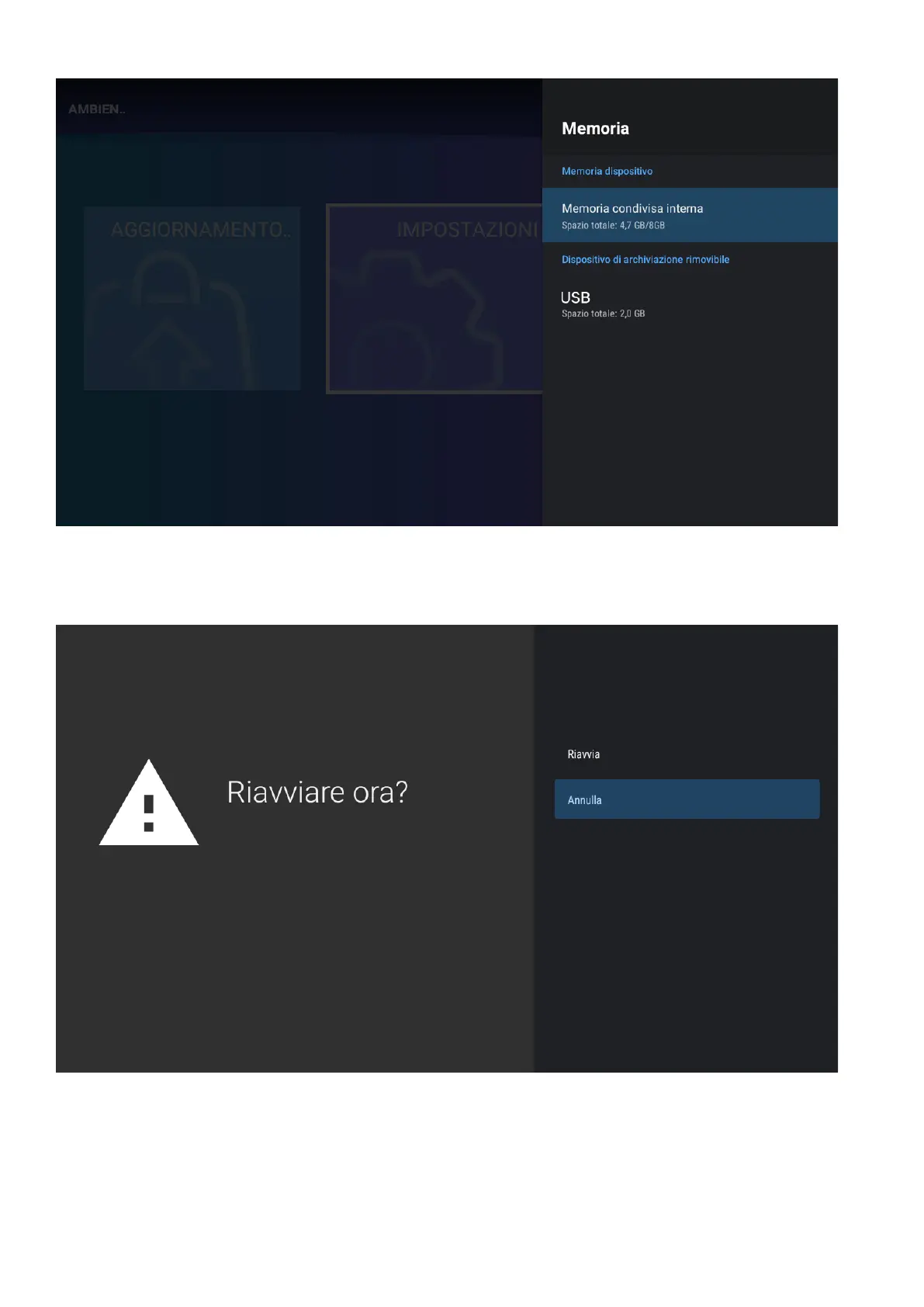 In questa sezione è possibile resettare lunità. Dopo il reset, i dati del sistema Android verranno