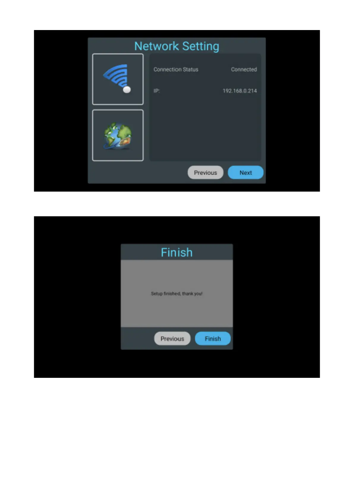 The Startup Wizard menu contains language settings and network settings. Language settings, you