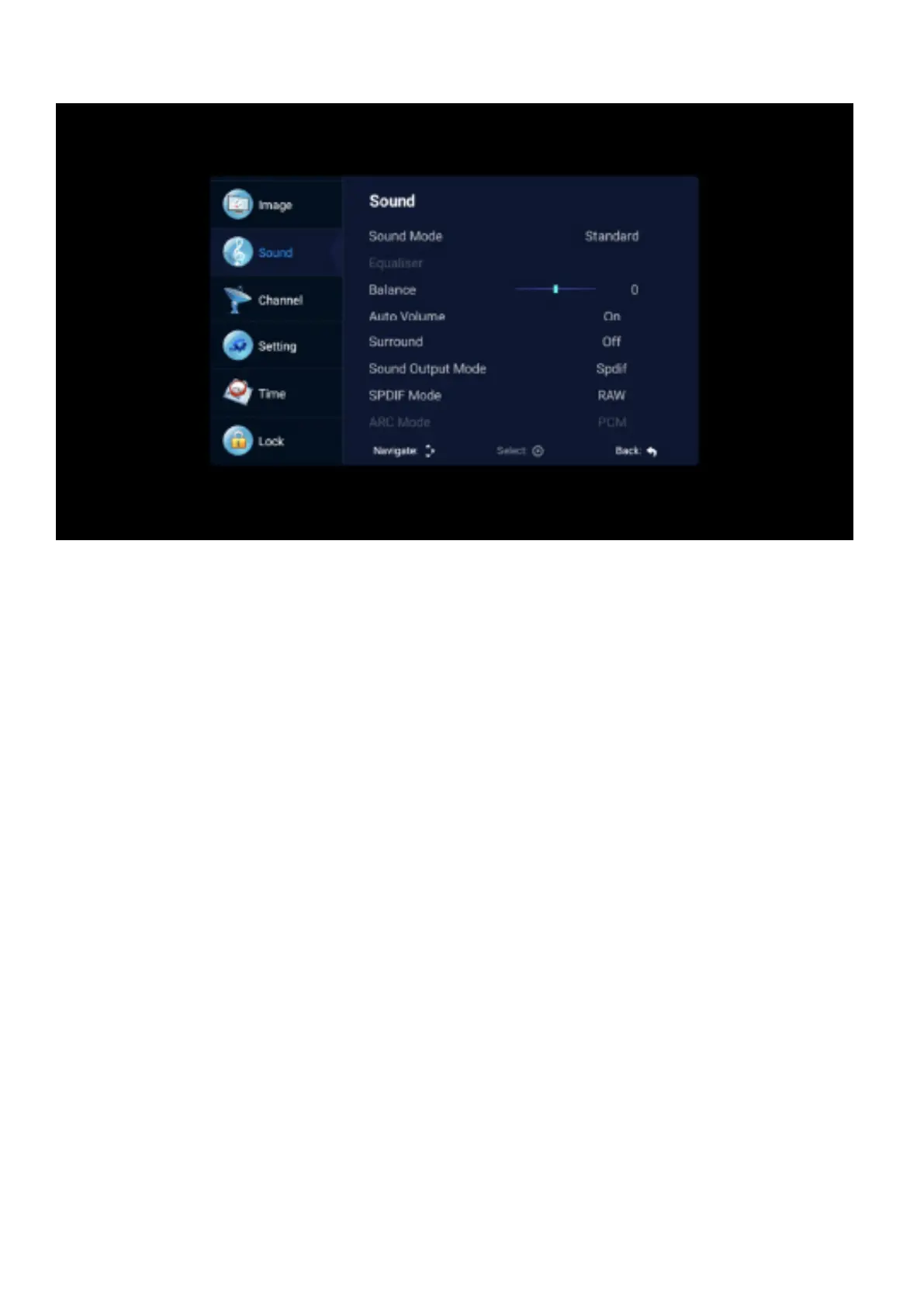 Use the up and down keys to select the sound menu, then press the right button to select the “Sound