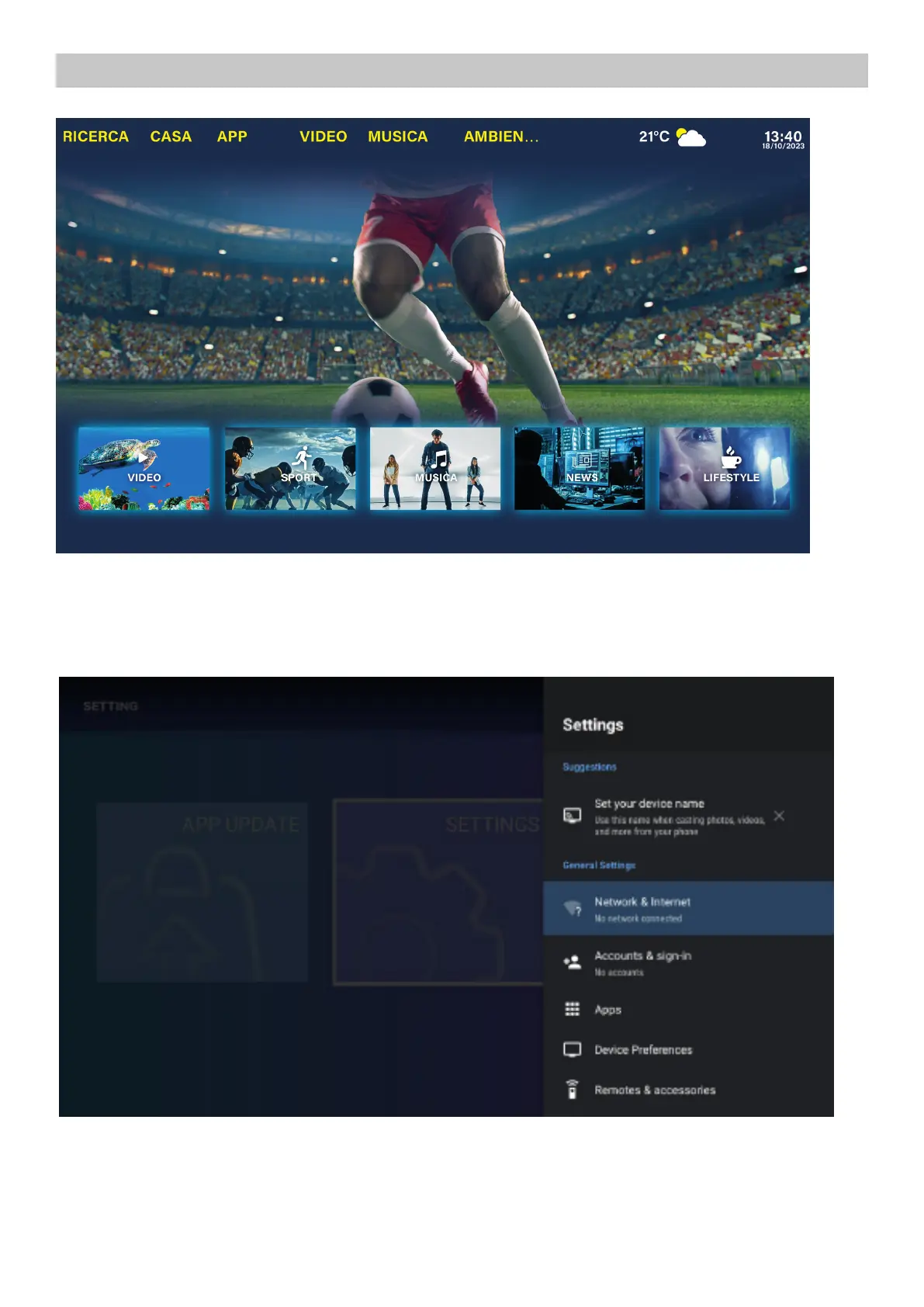 (Pick the image of setting and Press OK button to appear the interface of the android setting).