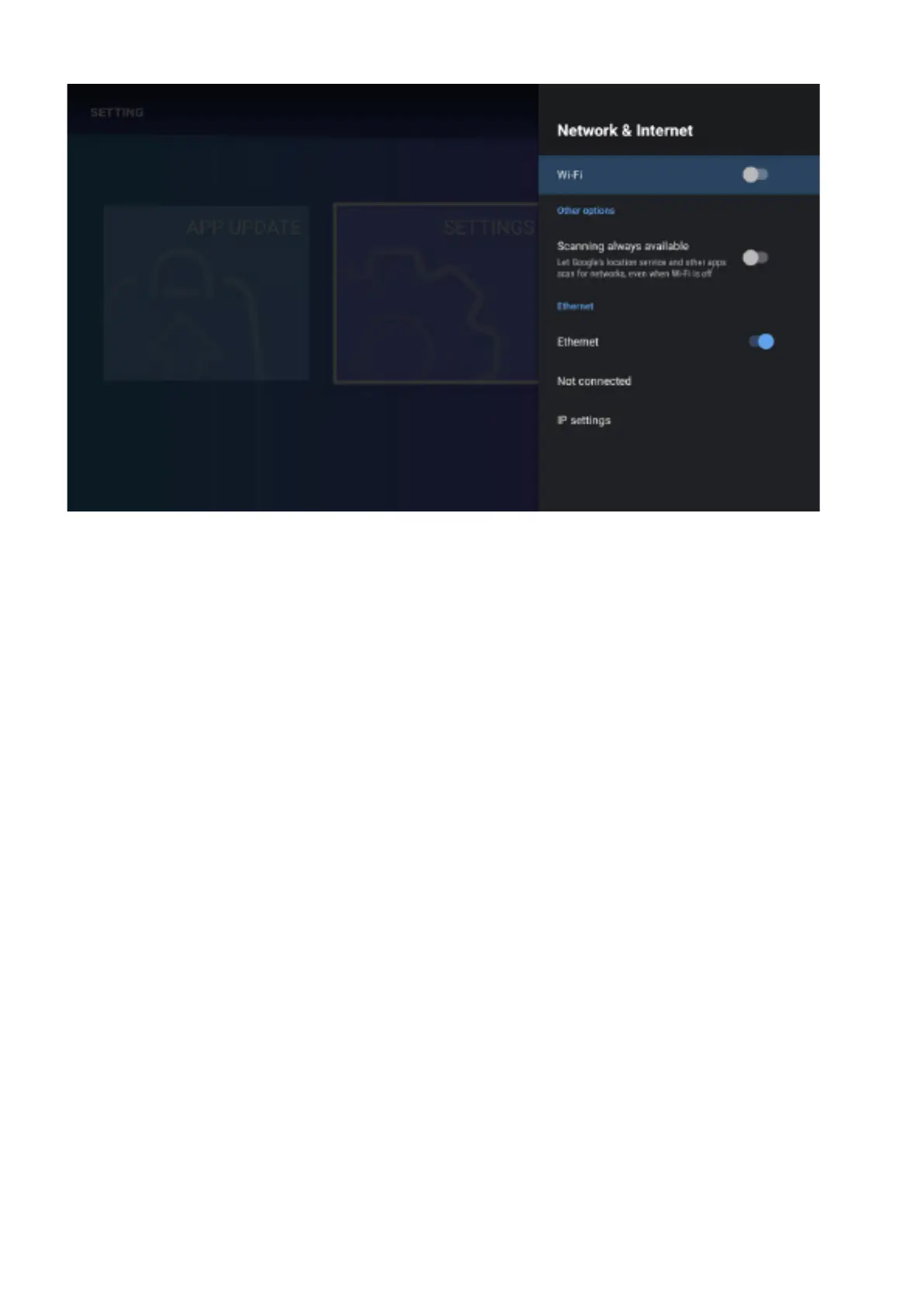 Settings to set the proxy. IP settings can set the way to get the ip address. There are automatic