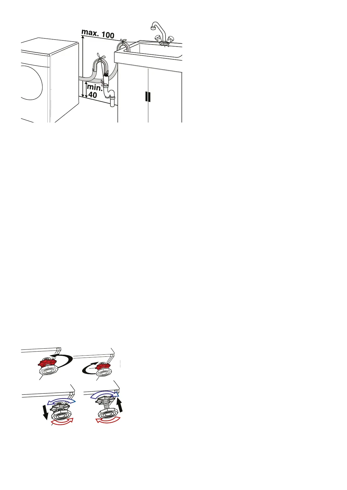 3. Aggiustare il piedino in modo tale che la lavatrice sia in piano e in equilibrio.