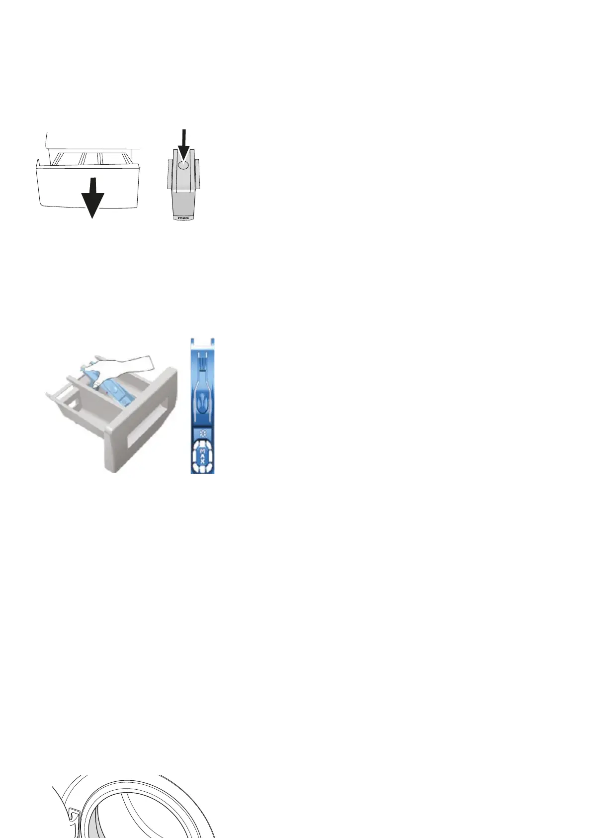 Clean the detergent drawer at regular intervals (every 4-5 washing cycles) as shown below in order