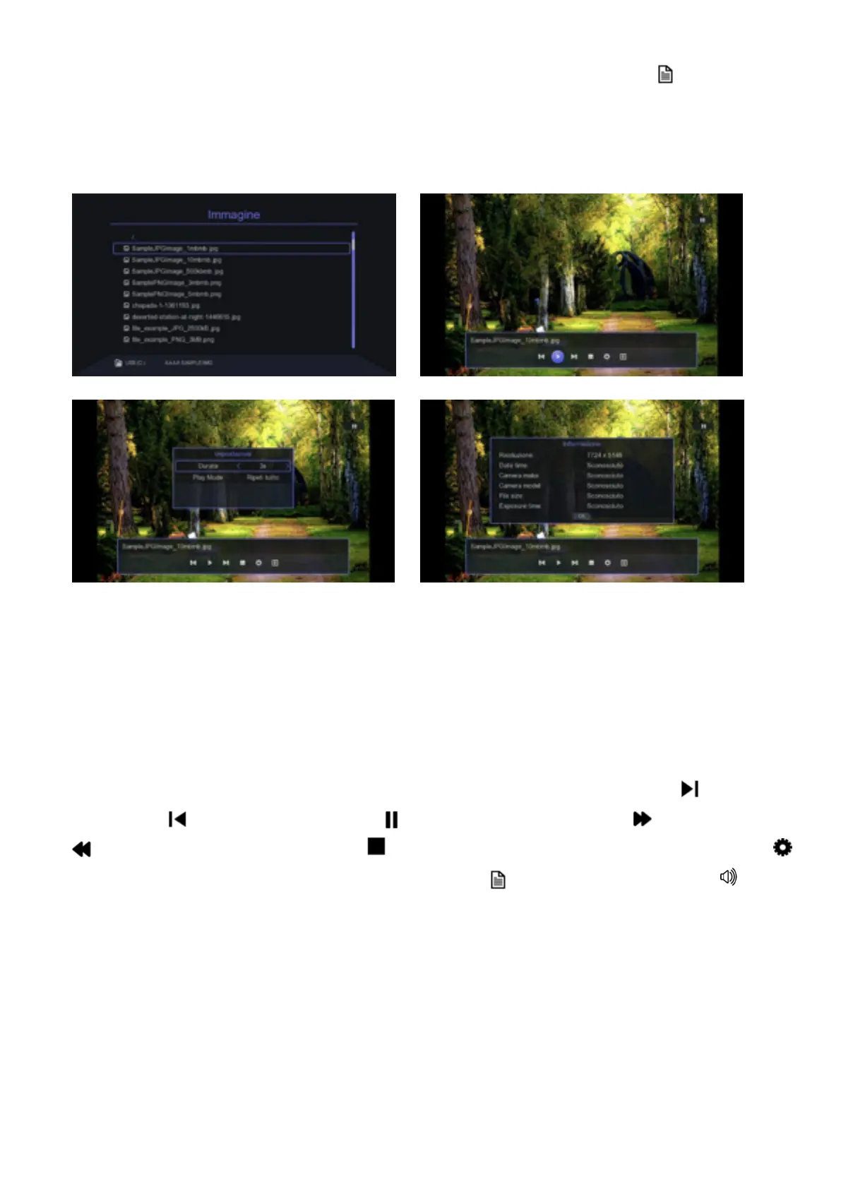 informazioni del file immagine. Il banner si attiva tramite il tasto OK del teleco-