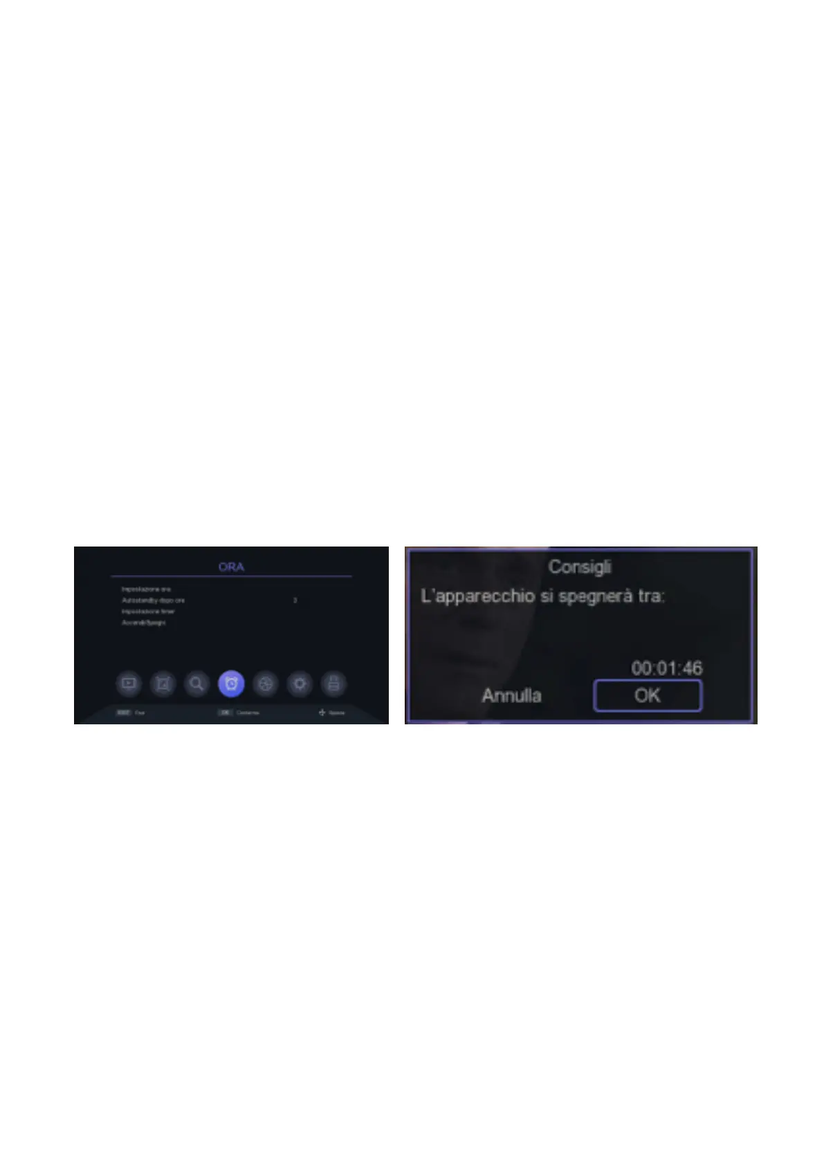 premere il tasto MENU del telecomando, aprire il menu ORA e selezionare