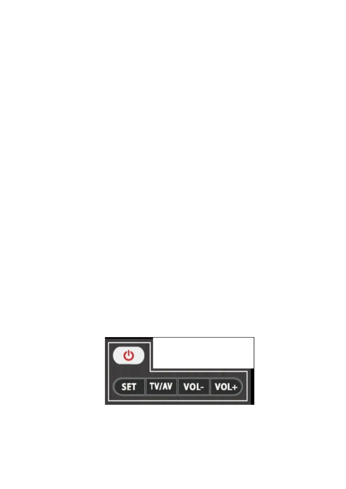 terno del rettangolo bianco (ON/OFF, TV/AV; VOL+ e VOL-). SET è un tasto