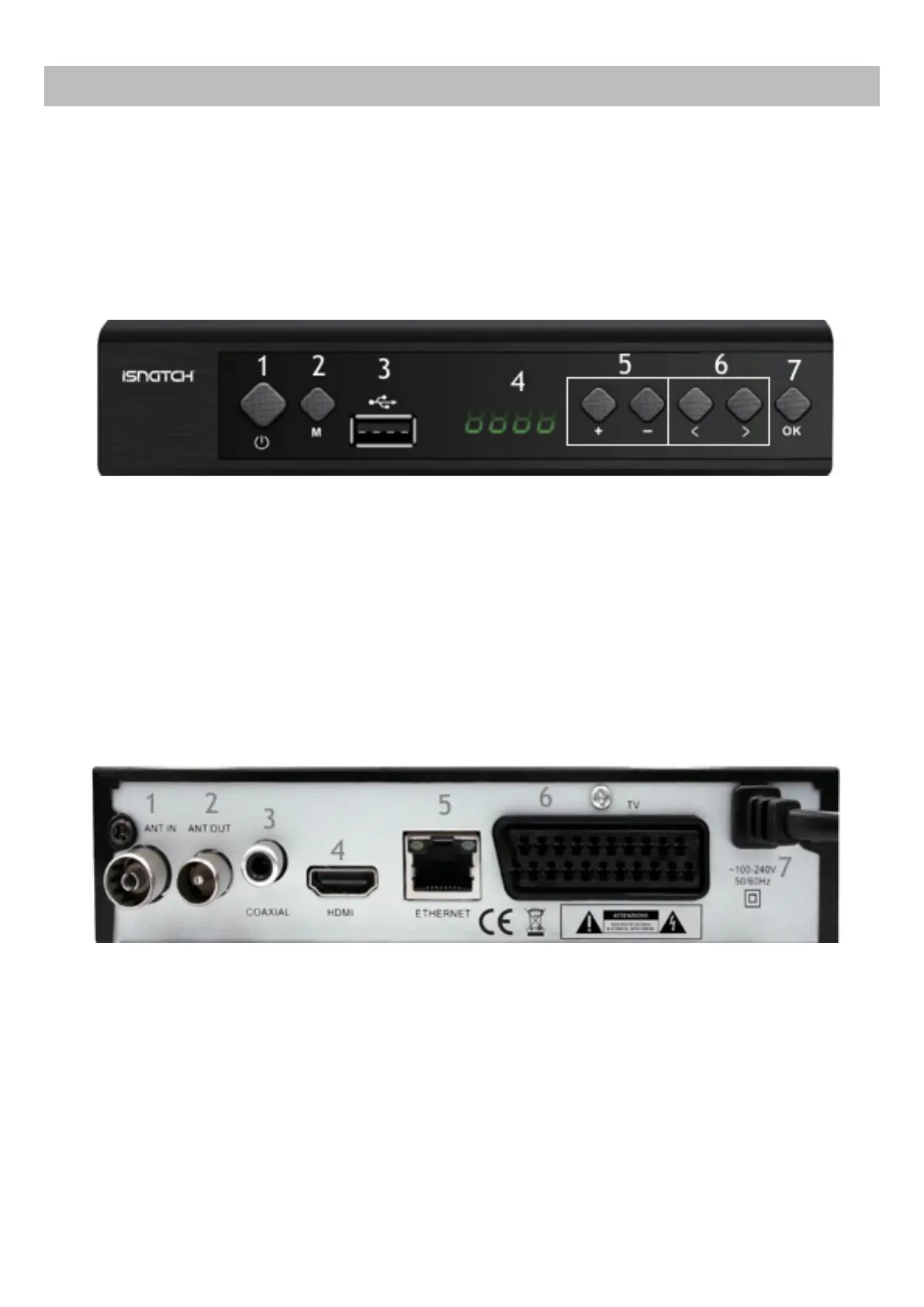 2. ANT OUT: output antenna cable (loop through to connect to another de-