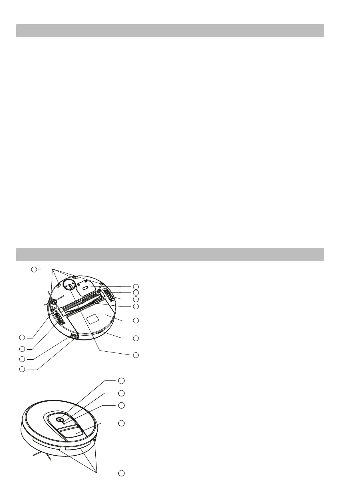 1.cliff detection sensor 2.side brush 3.right wheel 4.charger port 5.On/off button