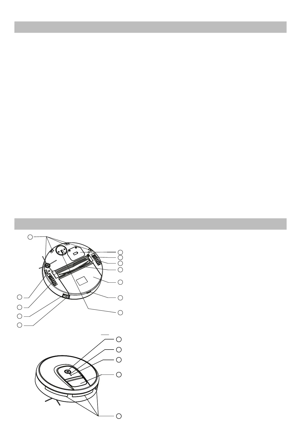 11.Dustin release button 12.Universal wheel 13.start/pause button 14.LED indicator