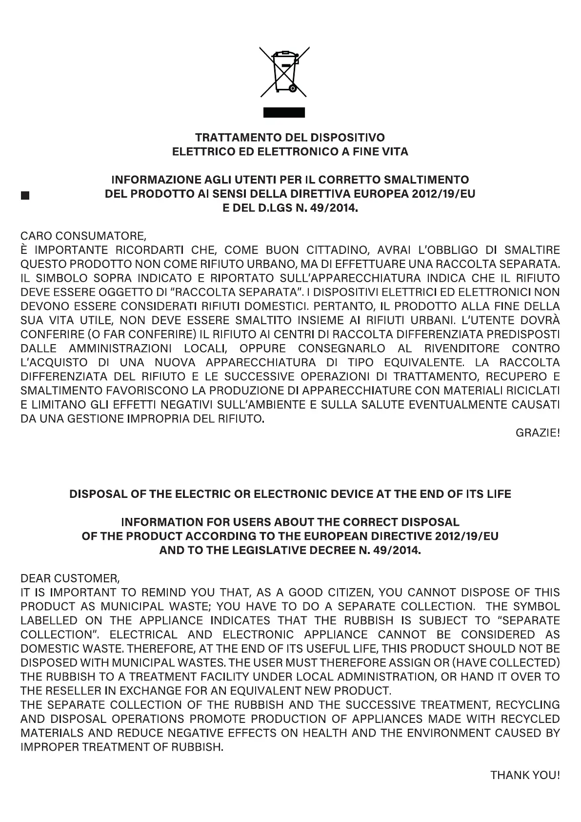 Kooper Respiro - Disposal of Electrical and Electronic Equipment; User Information for Correct Disposal