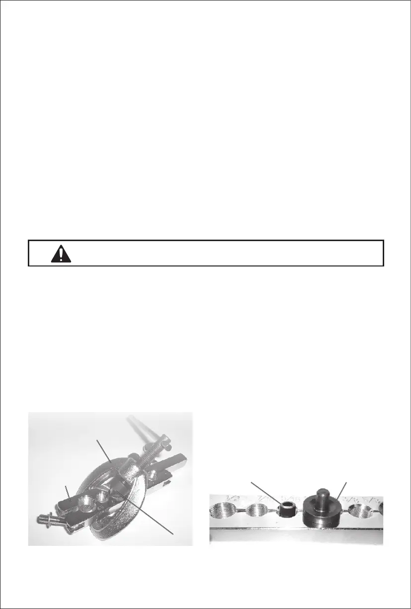 4. Place the flare nut (not included) over the tubing before flaring. Back off the Flaring Cone and remove