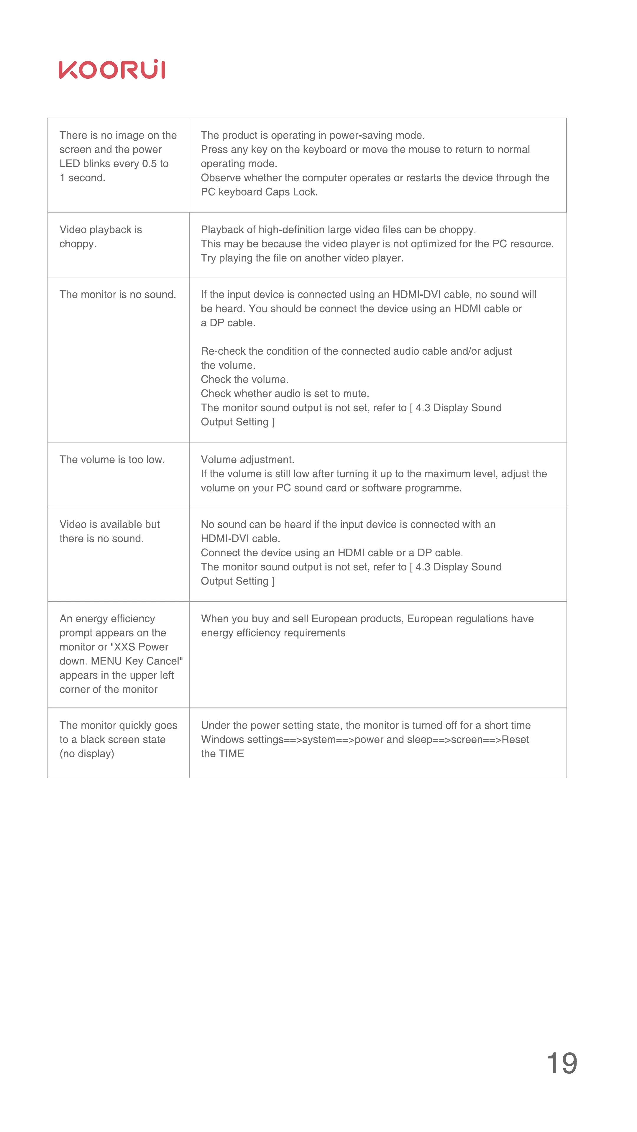 The monitor sound output is not set, refer to [ 4.3 Display Sound
