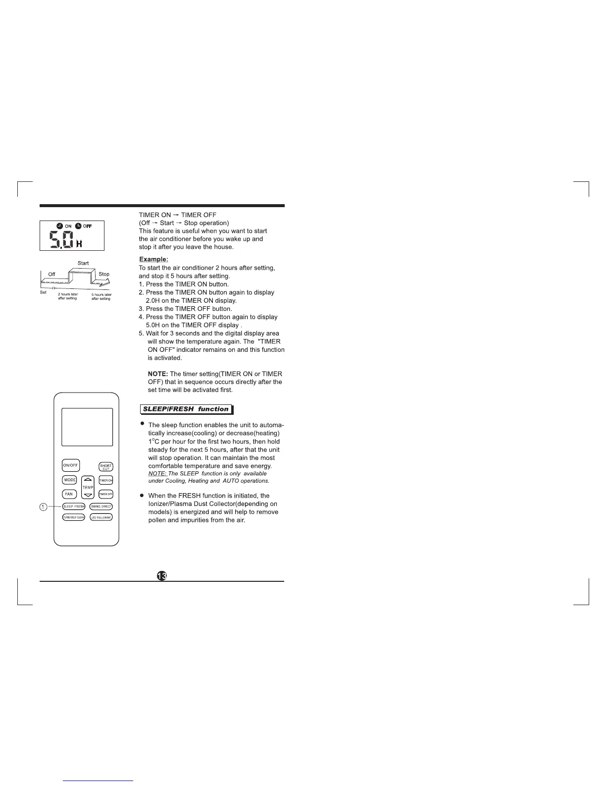 koppel RG52A/CEF - Advanced Timer and Sleep Functions; Timer ON - Timer OFF Operation; Sleep Function; Fresh Function