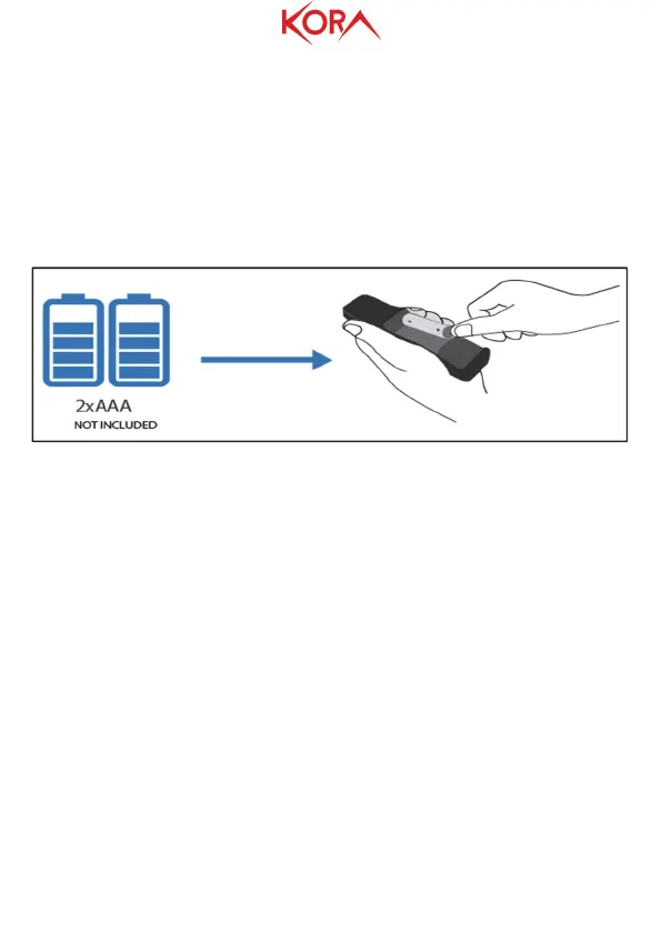 Remove the cover from the back of the remote control and insert 2 AAA batteries (not