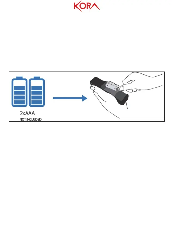 2 batterie AAA (non incluse) all'interno del comparto, assicurandosi che le polarità