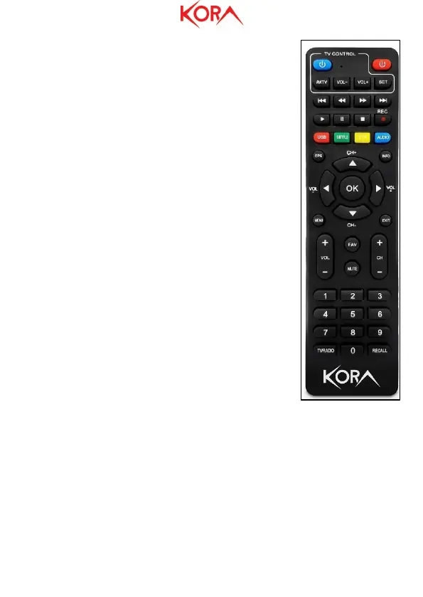 Kora DVB-T2 - 1.4 Remote Control; Remote Control Button Functions