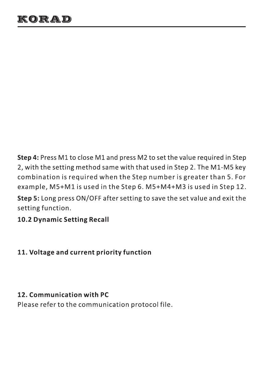 digits 1 5. Set the dynamic steps with M1 M5 digit combination.