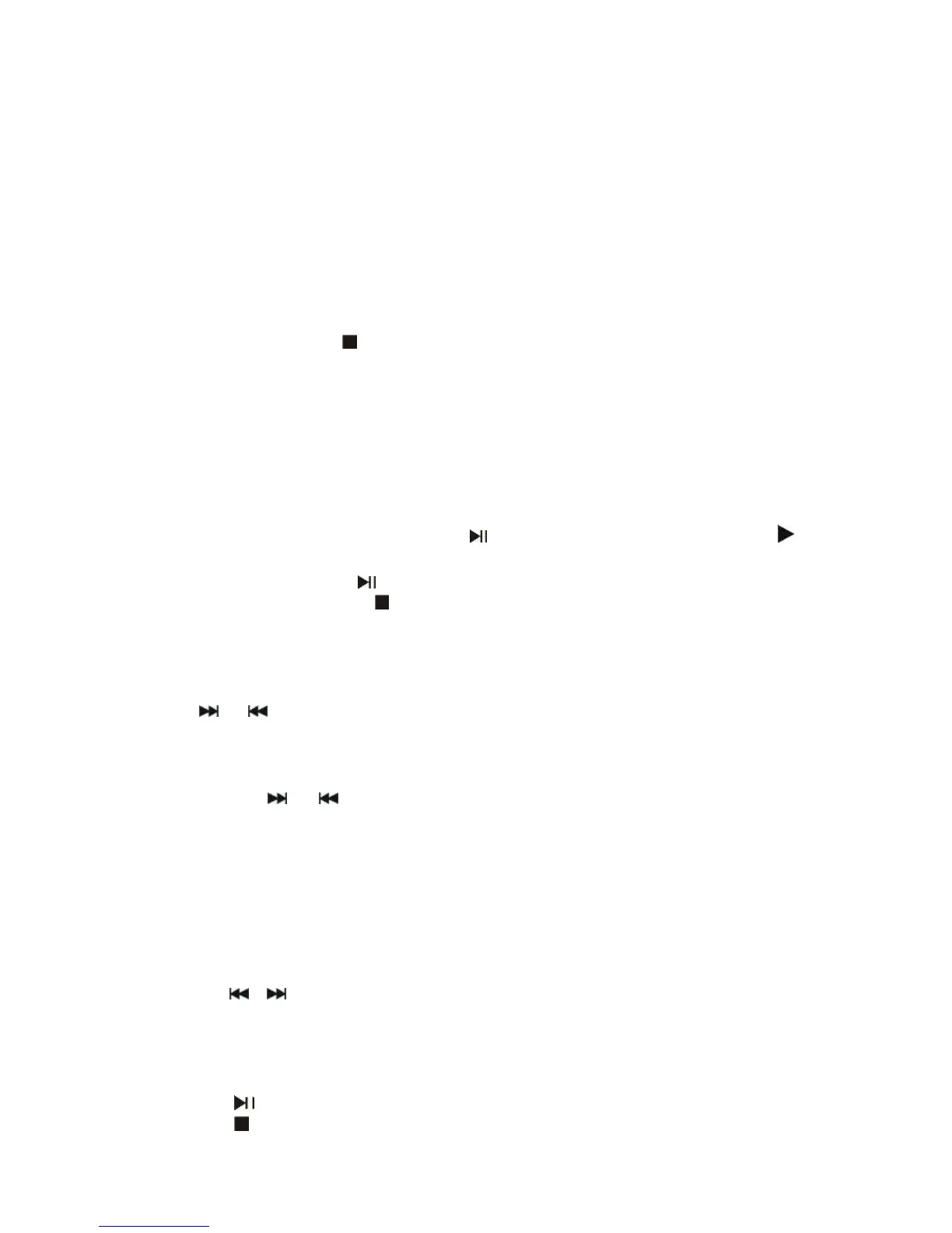 1. The playback starts from track 1, Press the /CH+ button to pause playback, the “ ”