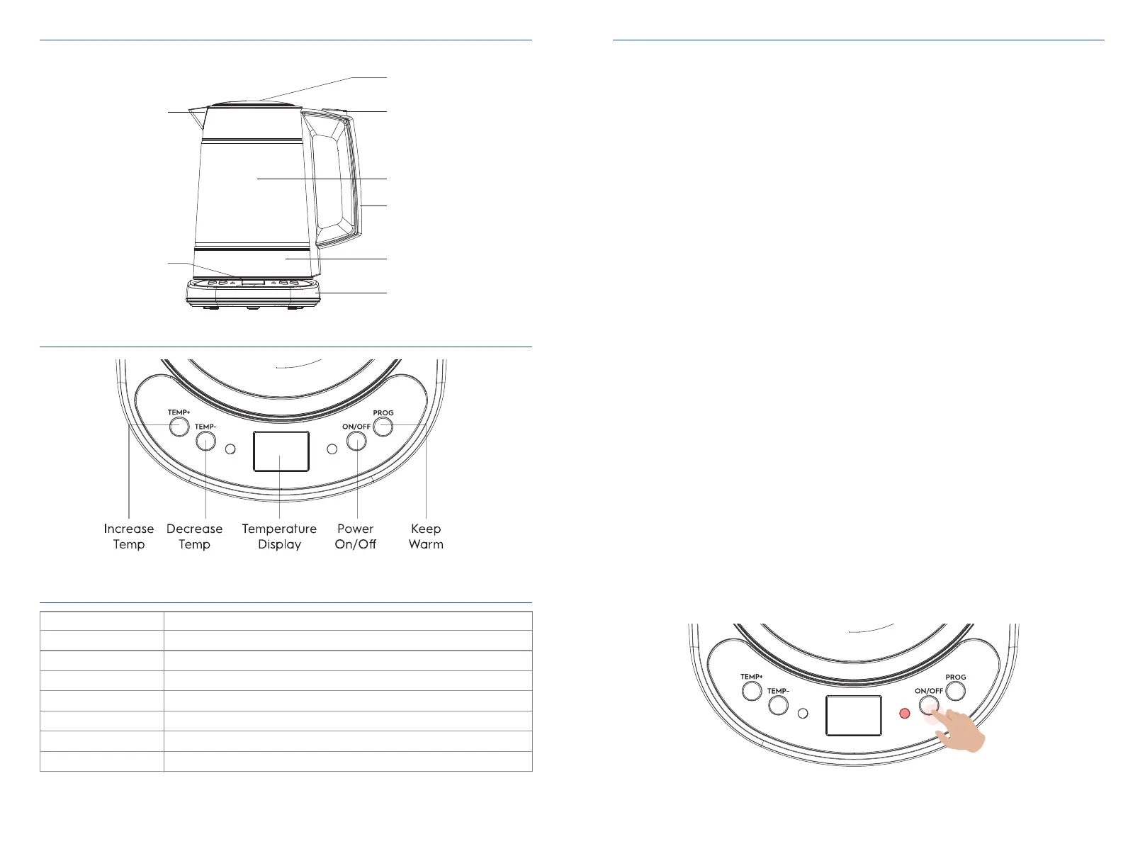 Take the kettle out of its stand, LED will display “EO”, the buzzer will sound “di”.