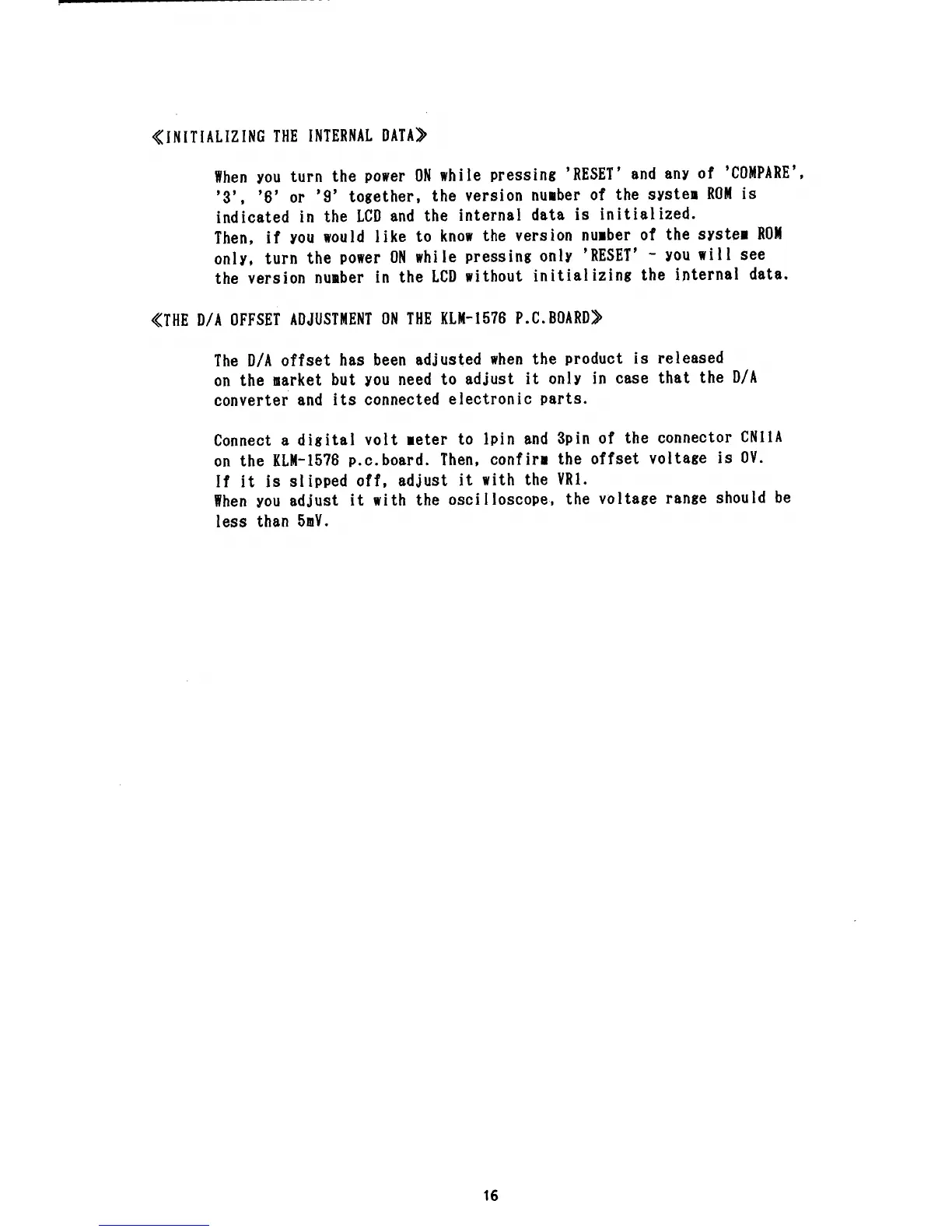Korg 01R/W - Initializing the Internal Data; The D;A Offset Adjustment on the P.C. Board