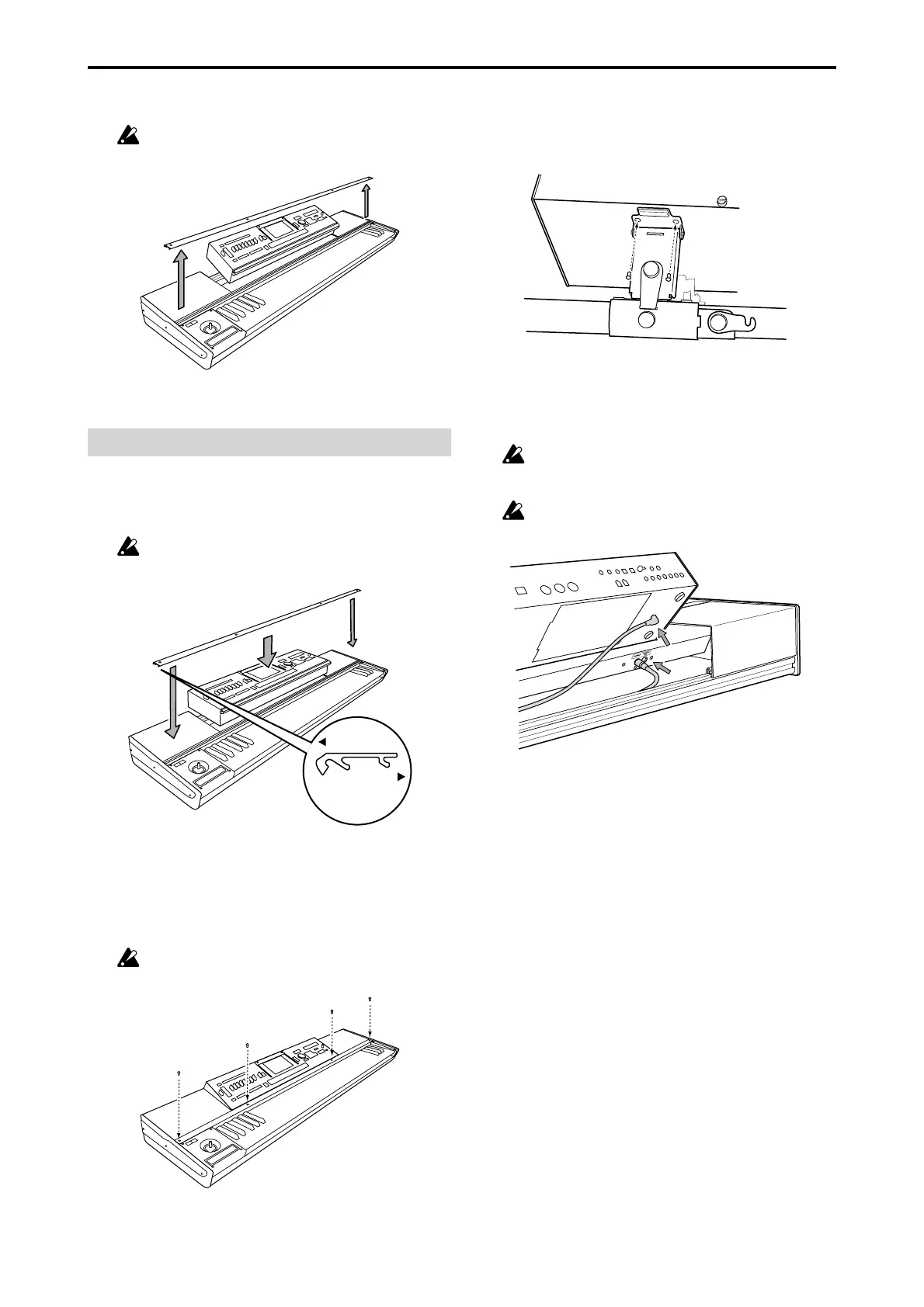 モジュールとキーボード・アセンブリの間で手をはさまない