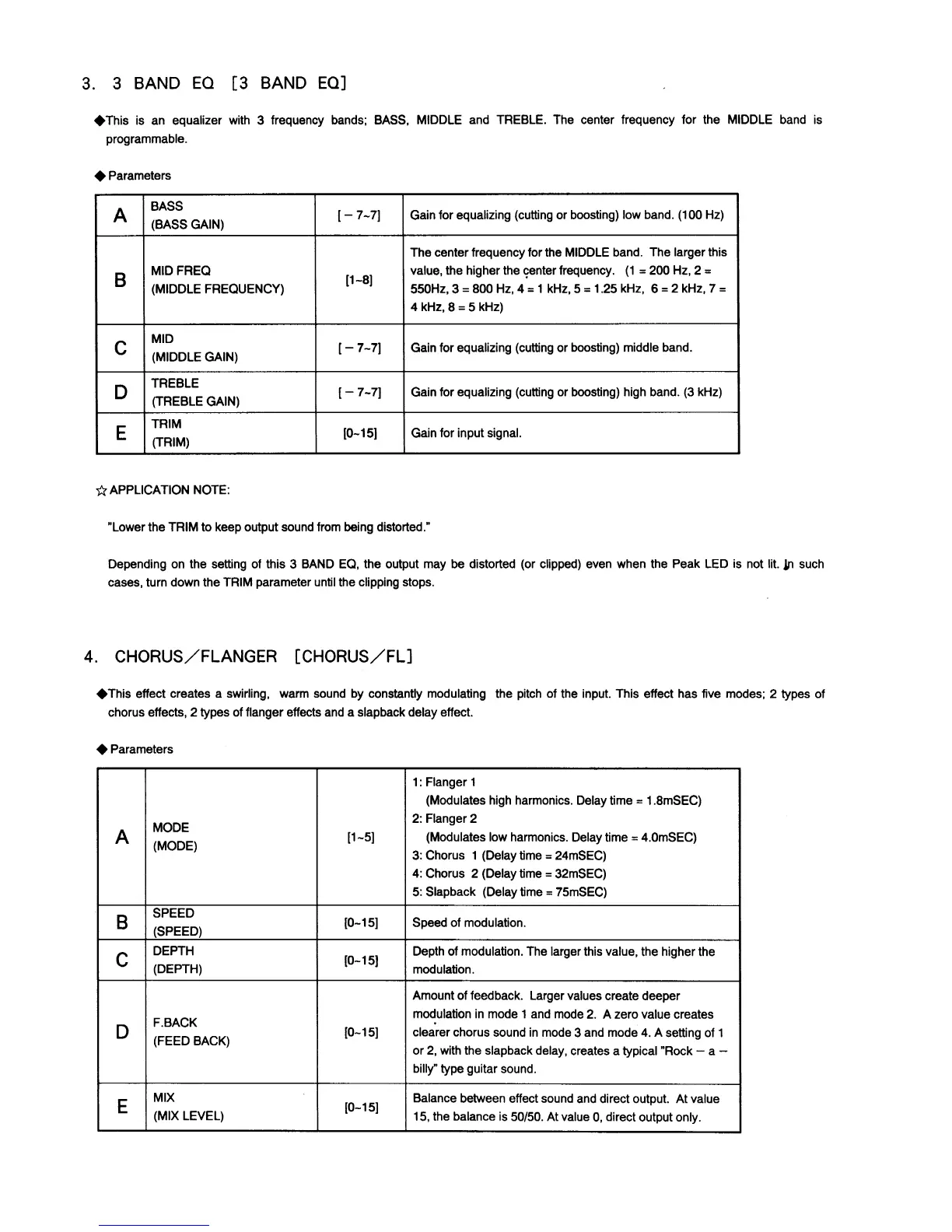 Korg A5 Guitar - 3 Band EQ [3 Band EQ]; Chorus;Flanger [Chorus;FL]