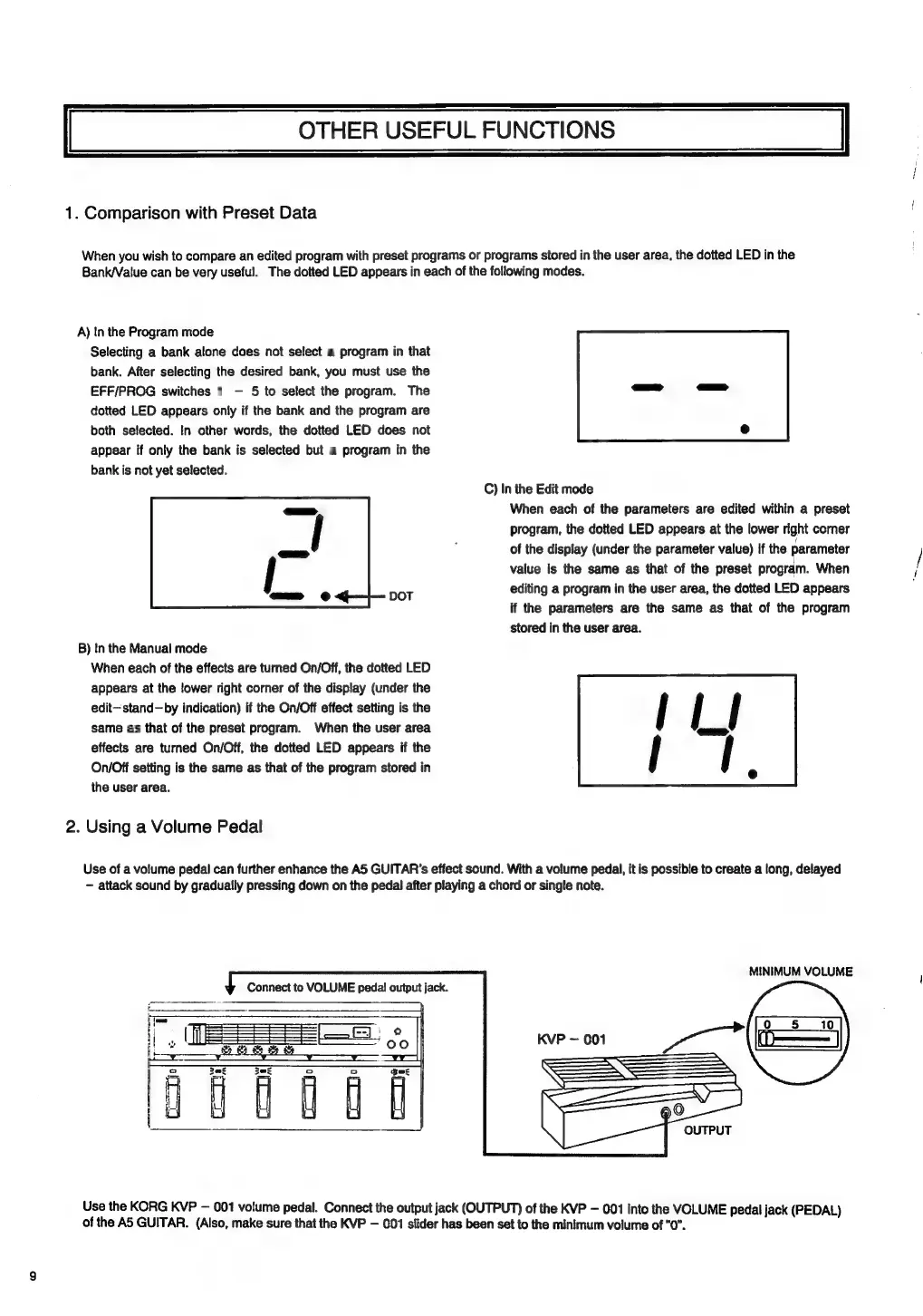 Korg A5 - Other Useful Functions; Comparison with Preset Data; Using Volume Pedal