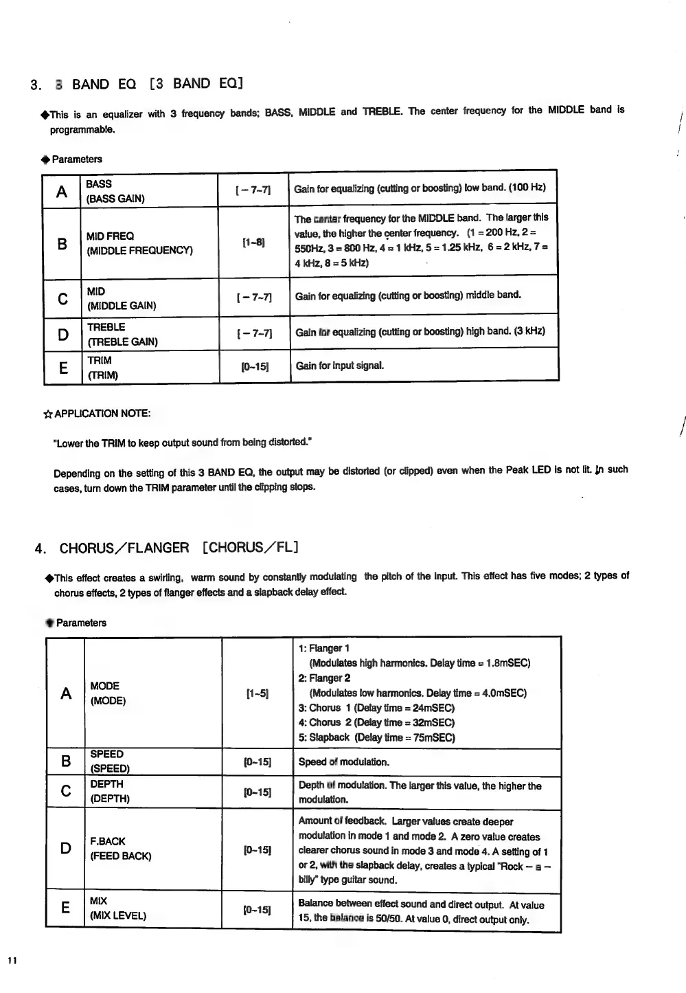 Korg A5 - Band Eq [3 Band Eq]; Chorus;Flanger [Chorus;Fl]