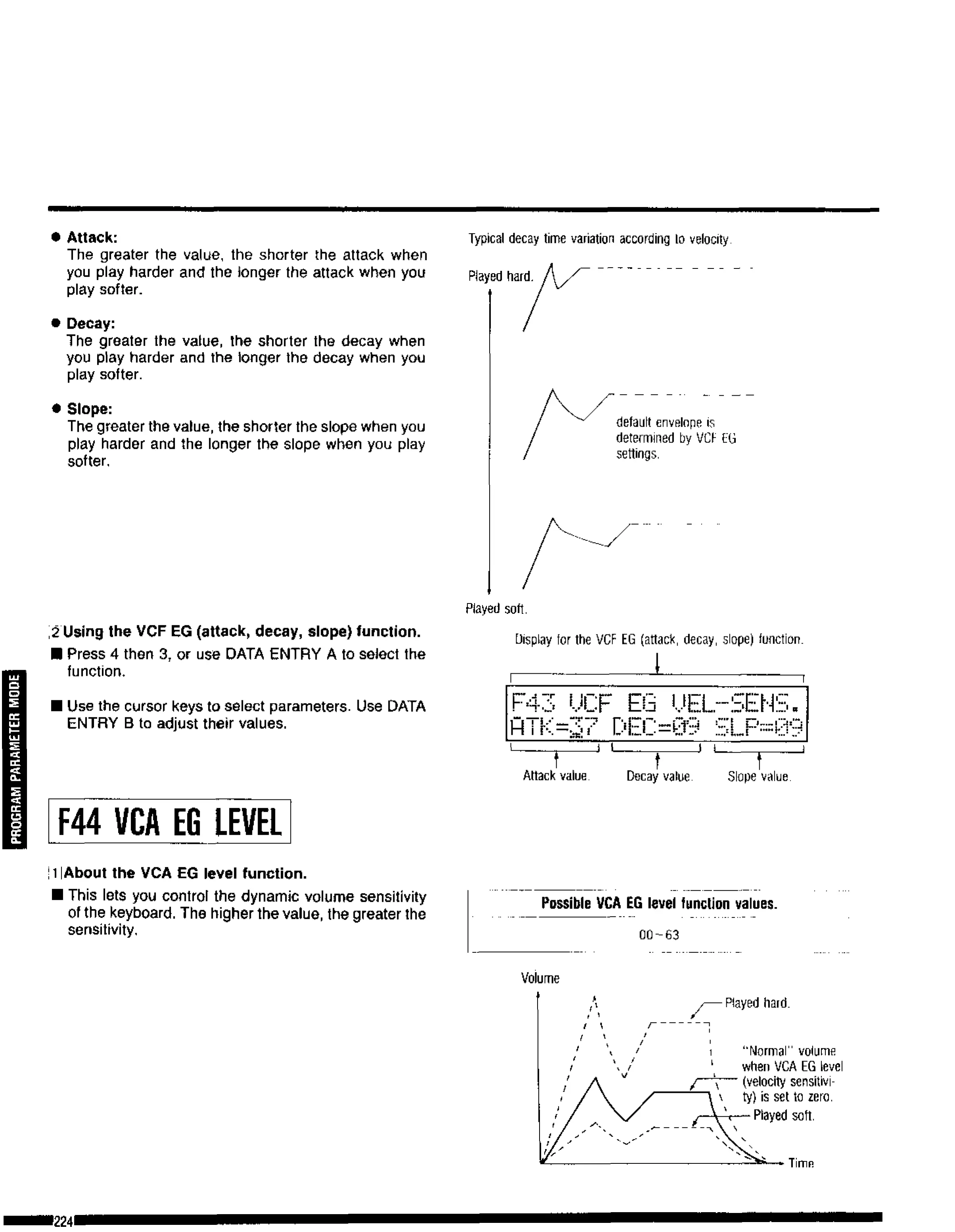 Display for the VCF EG (attack, decay, slope) function.
