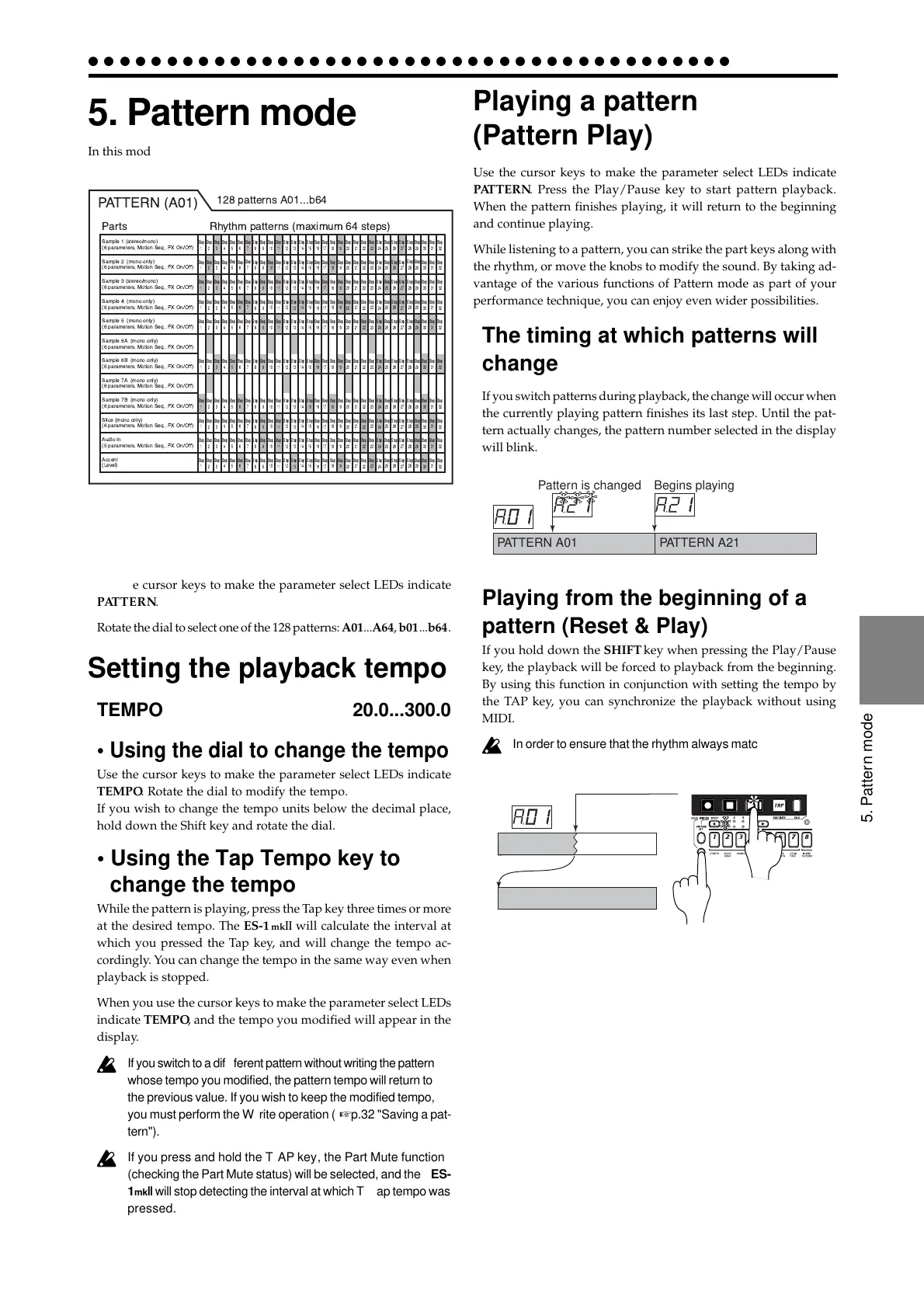 terns. Press the Pattern mode key to enter Pattern mode.