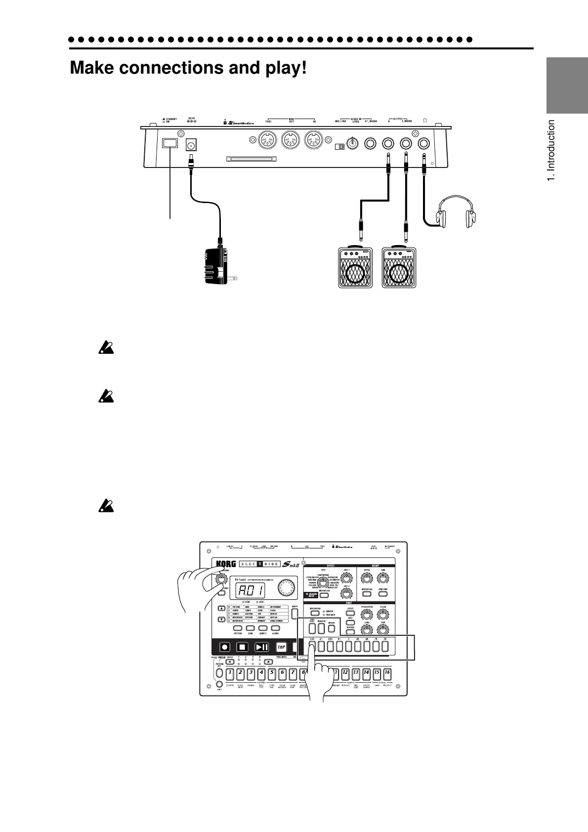 1. Connect the included AC adapter to the DC 9V jack, and plug the adapter into an AC outlet.