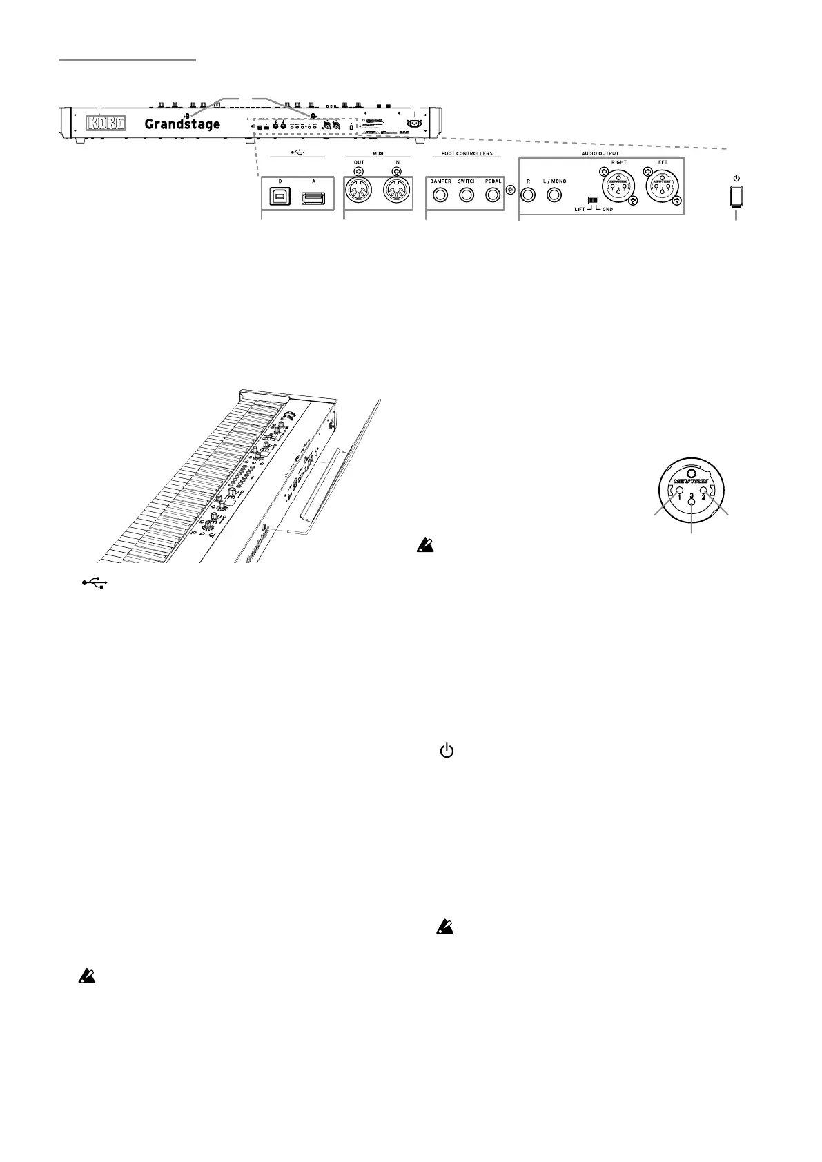 Connectez ici la pédale forte fournie avec le Grandstage.
