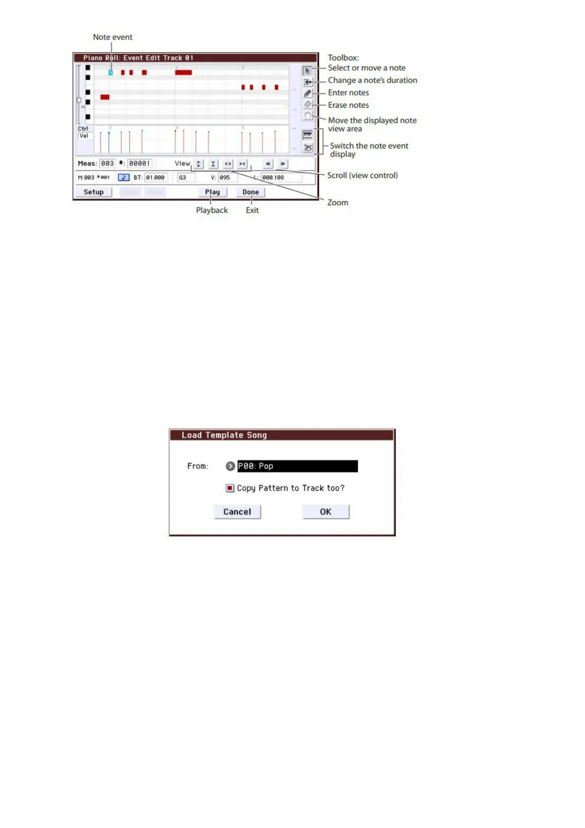 4. Press the OK button to load the template song, or press the Cancel button to exit without making