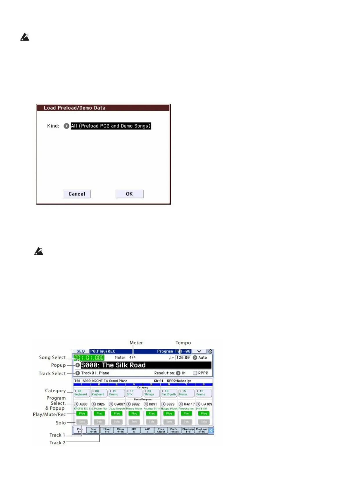 When you execute loading, the preloaded data and the demo song data will be loaded.