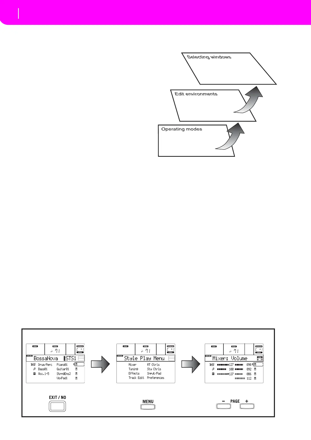 • selecting windows (Style Select, Song Select, Pro-