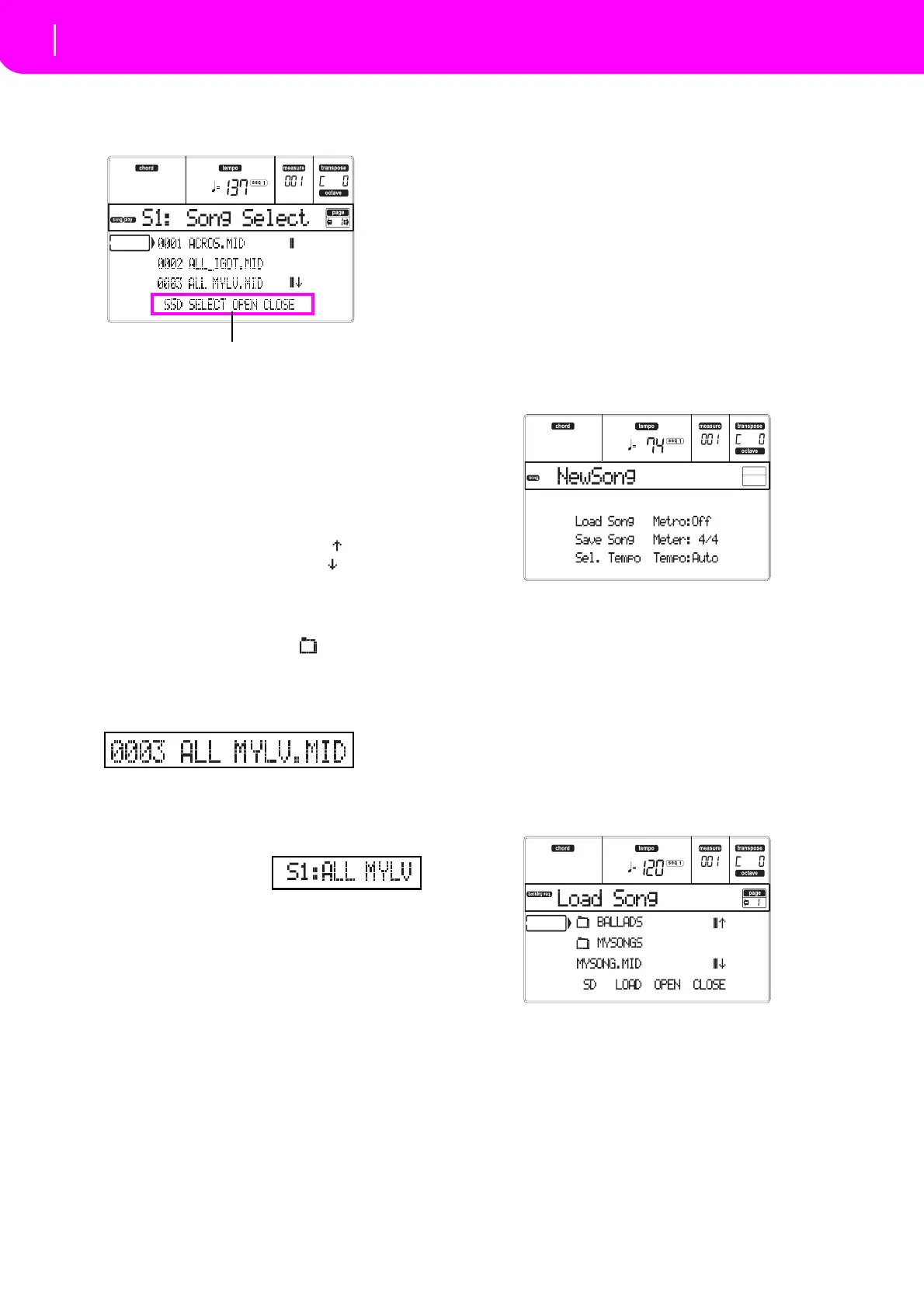 procedure to select a Song for Sequencer 2. Use the