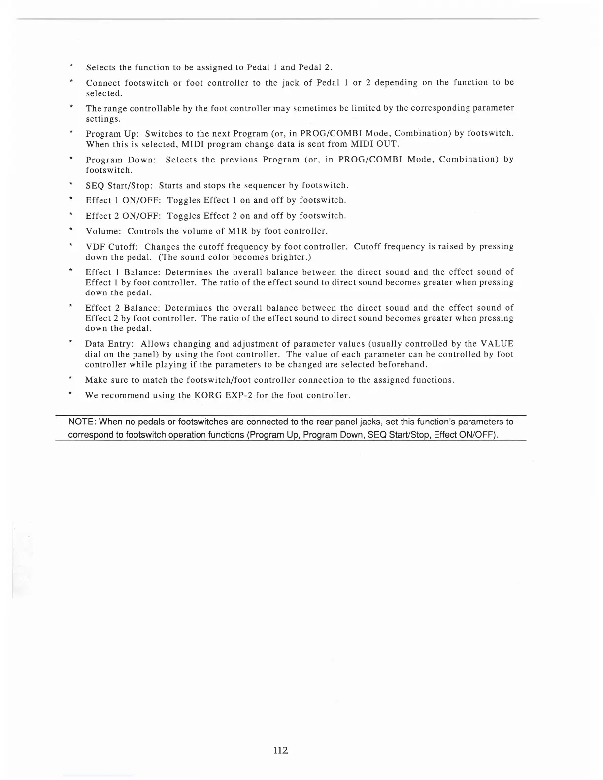 NOTE: When no pedals or footswitches are connected to the rear panel jacks, set this function's parameters to