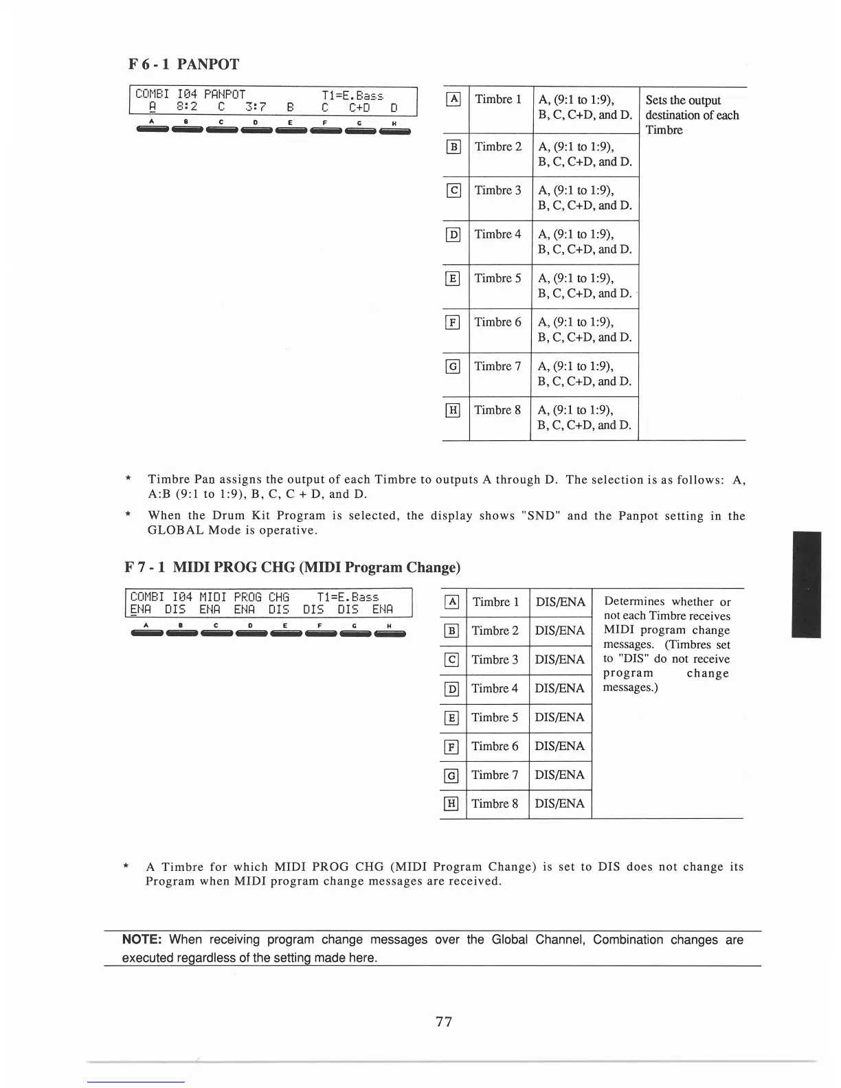 F 7 - 1 MIDI PROG CHG (MIDI Program Change)