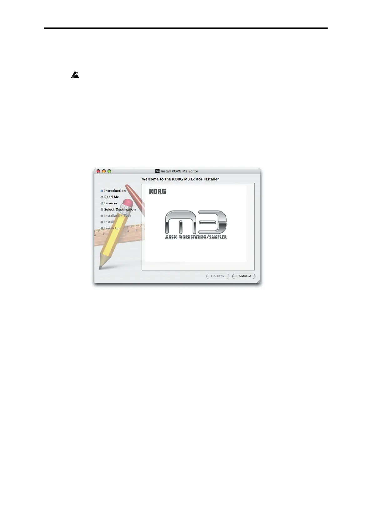 Start up the installer by double-clicking “M3 Editor Installer.pkg” located in the “M3