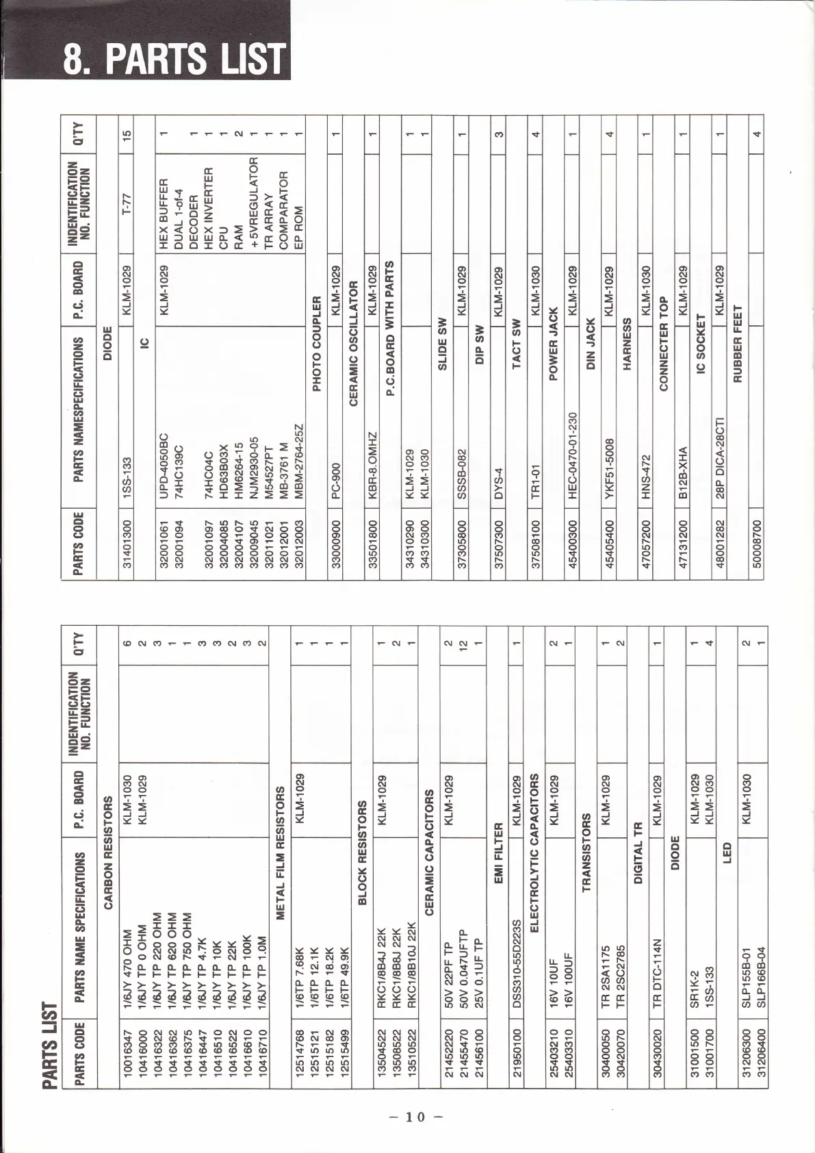 Korg MEX-8000 - Korg MEX-8000 Parts List