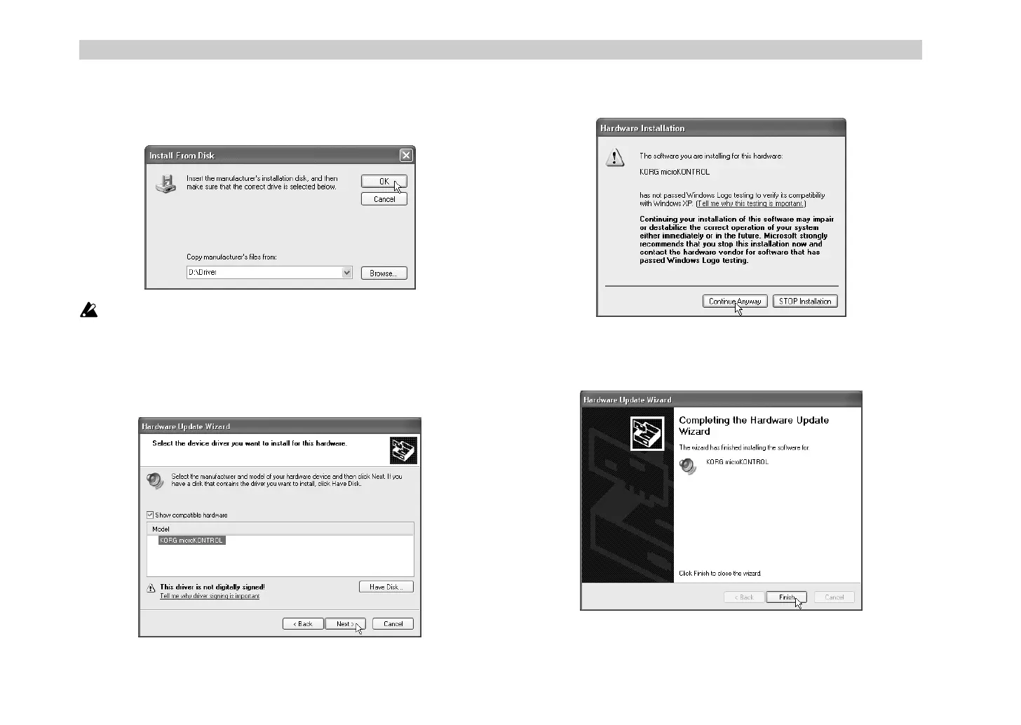type the name of the folder “D:\Driver” that contains the KORG USB-