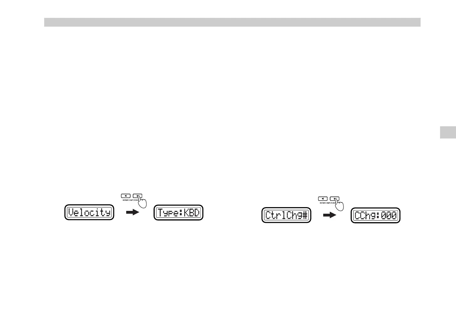 “KbdOnVel” or “PadOnVel,” and the velocity value transmitted will be