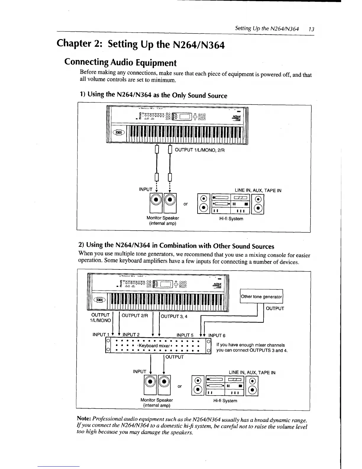 Korg N264 - Setting Up the N264;N364; Connecting Audio Equipment