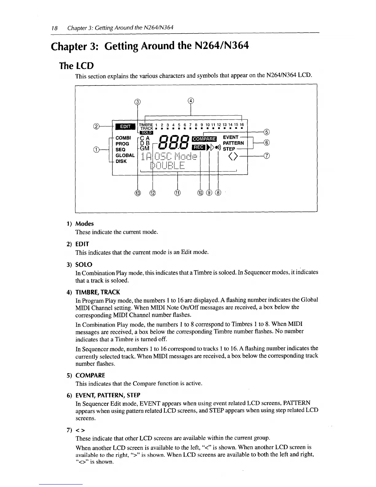 Korg N264 - Understanding the N264;N364 LCD; The LCD