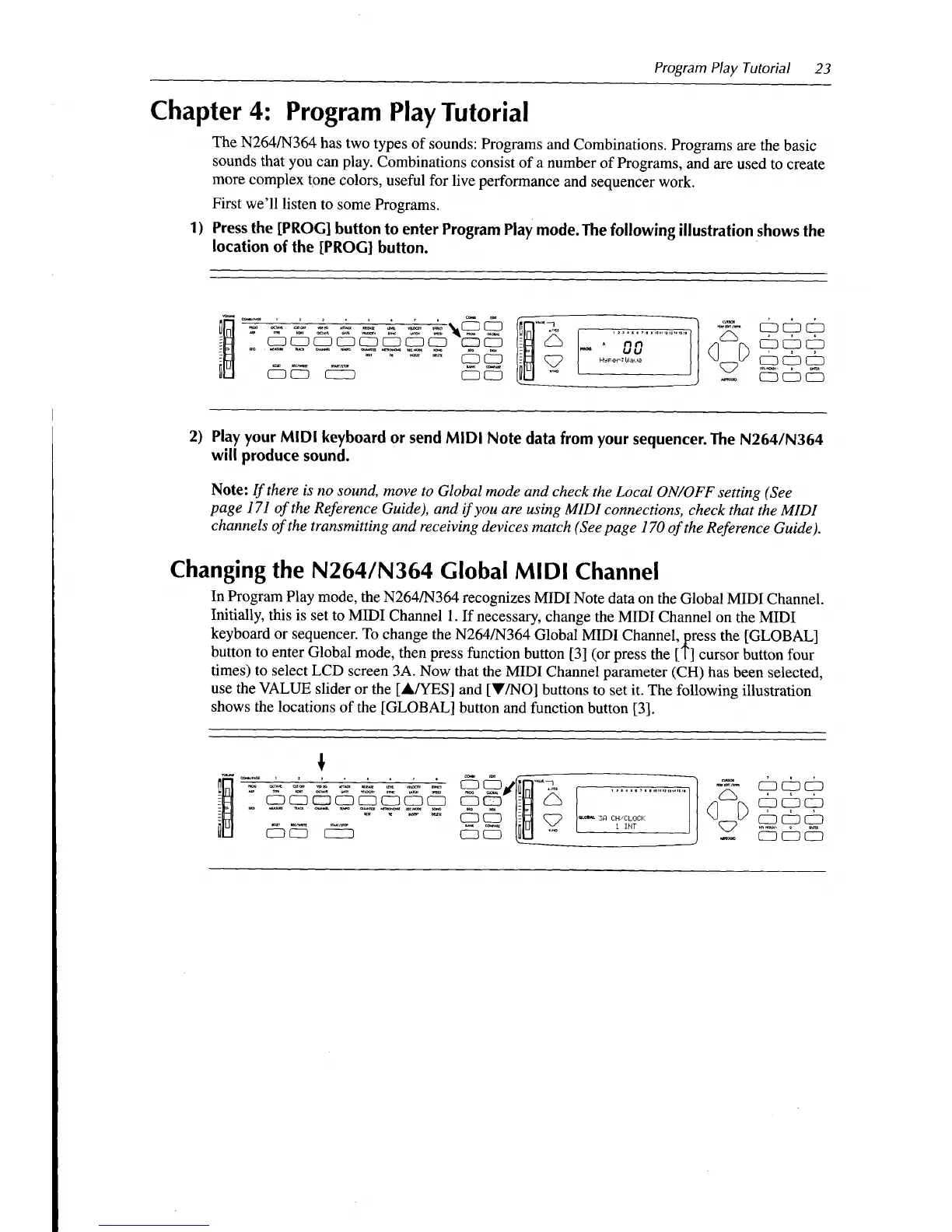 Korg N264 - Program Play Tutorial; Listening to Programs; Changing the N264;N364 Global MIDI Channel
