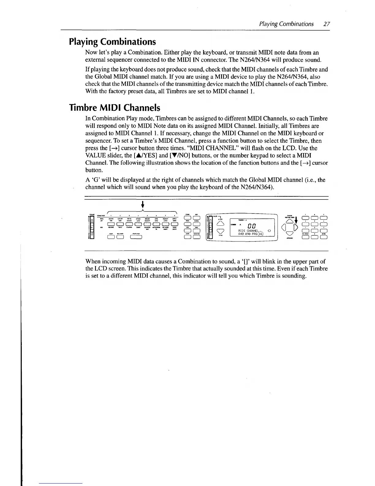 Korg N264 - Playing and Managing Combinations; Playing Combinations; Timbre MIDI Channels
