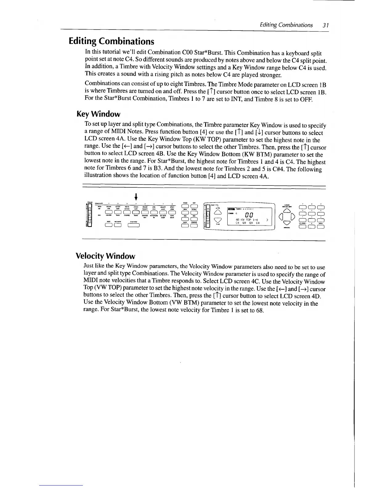 Korg N264 - Editing Combination Parameters; Key Window; Velocity Window